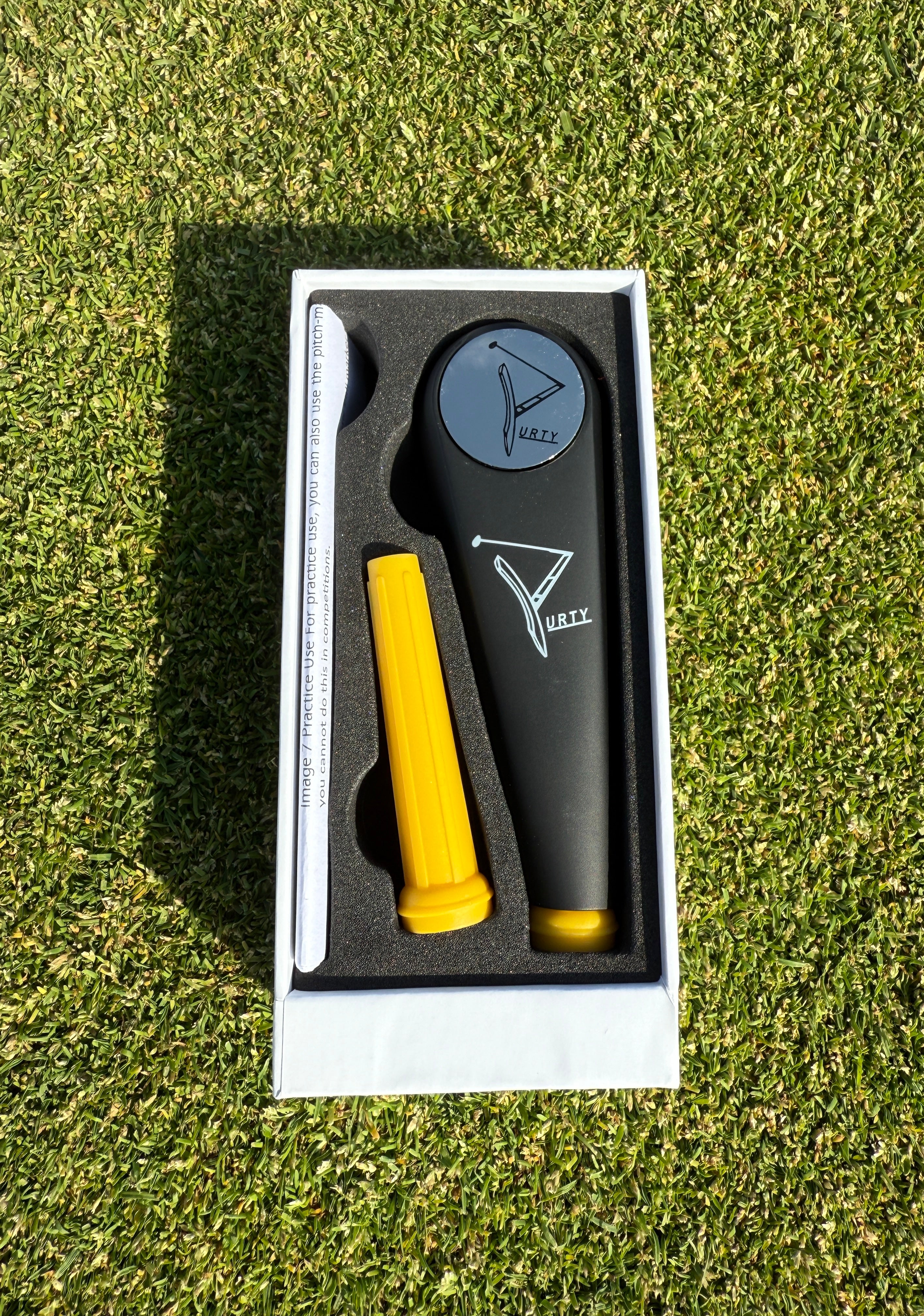 YURTY - The #1 Golf Accessory! Never again lose time looking for your golf tee! A 3 in 1 long-lasting, retractable golf tee, pitch mark repairer & ball marker!